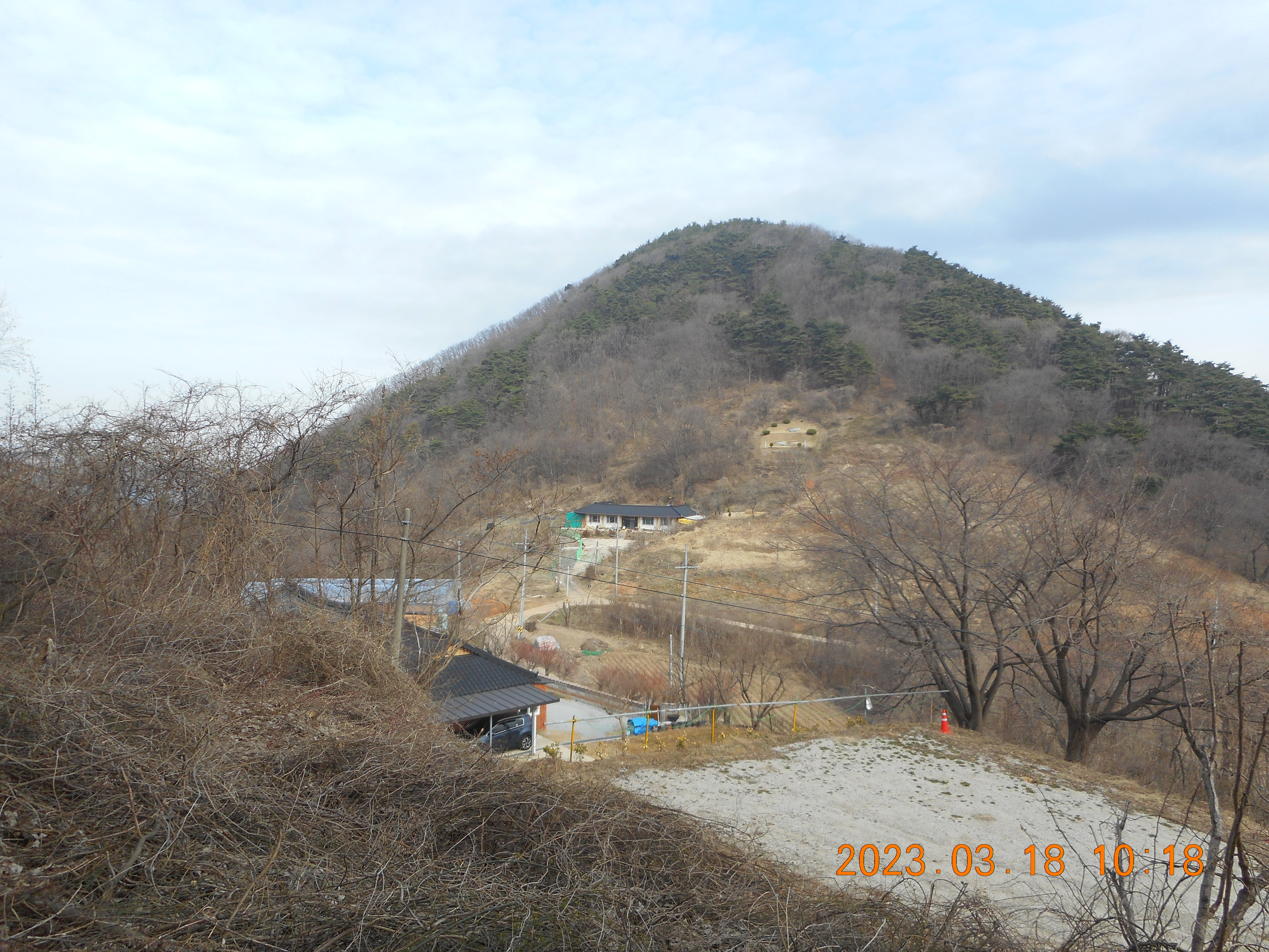 진입로 부근이 산을 깎고 공터를 조성하여